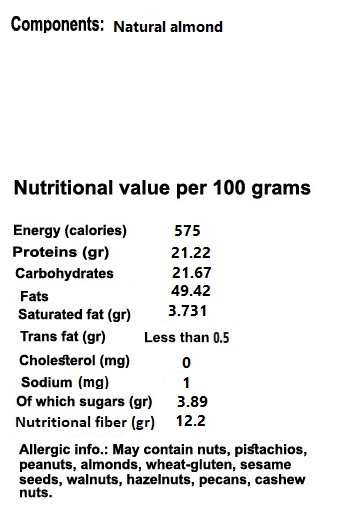 Previous Product Next Product Natural almond 200 g$6.10 Certified Kosher Gluten-Free Vegan Non-GMO Ready to eat right out of the bag! Ships directly from Israel! Natural almond 200 g quantity Add to cart Category: Seeds Additional information Reviews (0) Additional information Weight 200 g Dimensions 8 × 12 × 5 cm Reviews There are no reviews yet. Be the first to review “Natural almond 200 g” Cancel replyYour email address will not be published. Required fields are marked *Your rating Rate… Perfect Good Average Not that bad Very poor Your review *Name * Email * Save my name, email, and website in this browser for the next time I comment. Related products Quick View Quick View SeedsPistachios 100 g $3.15 Add to cart Quick View Quick View SeedsWatermelon Seeds 100 g $2.48 Add to cart Quick View Quick View SeedsCashew 100 g $3.38 Add to cart